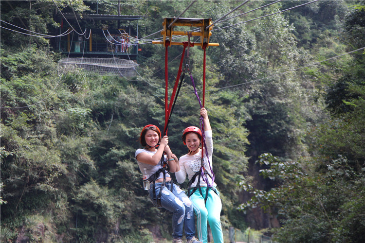 這個有點嚇人,不過也挺爽的。每個人都是不同的心情來到這繩索鏈道上,非一般的感覺,讓人真是越來越有沖勁,期待著前面要挑戰的項目。